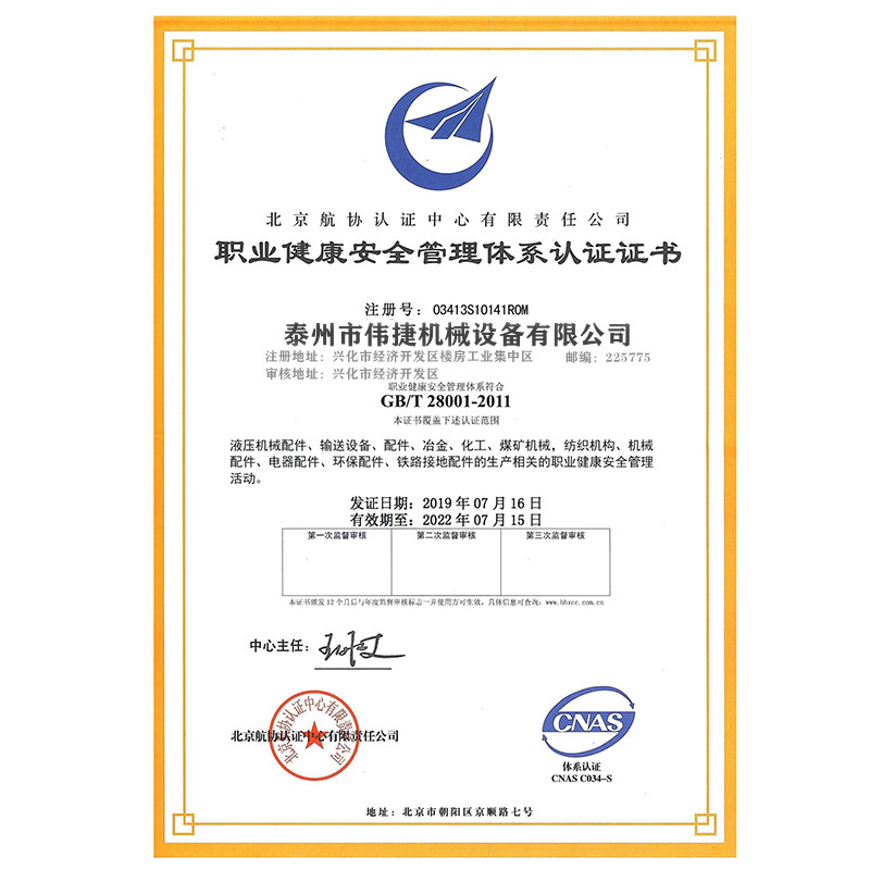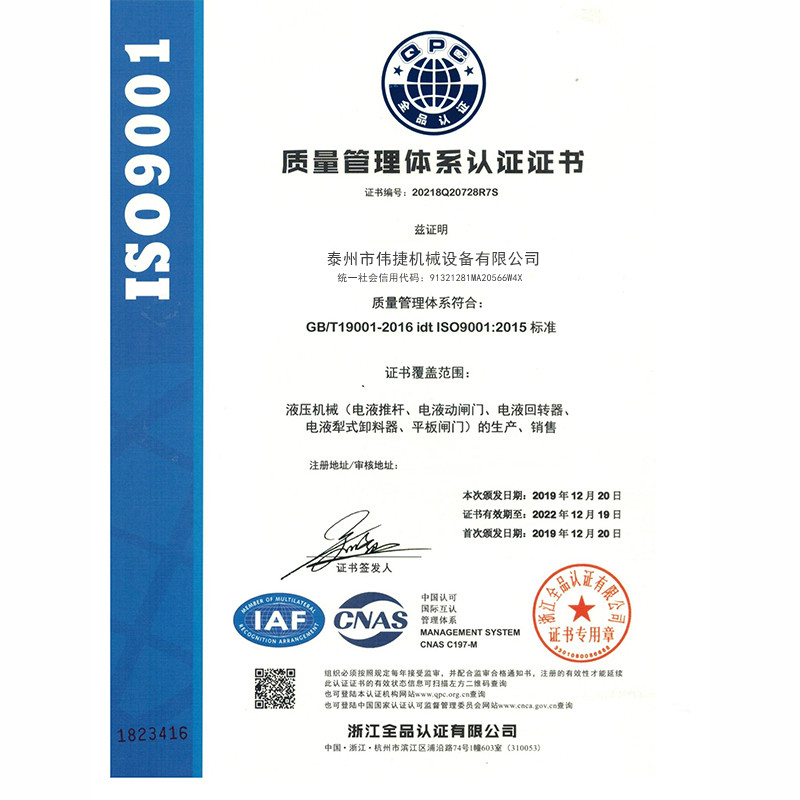 Weijie Machinery Equipment Qualification Certificate